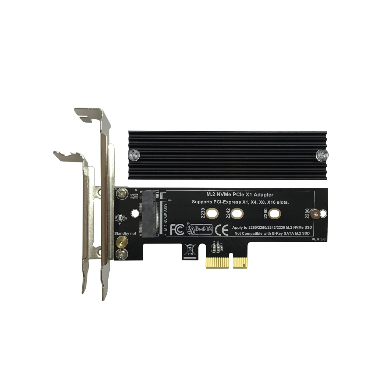 M.2 PCIe NVMe X1 Adapter with Aluminum Heat Sink, Support PCIe 3.0 4.0 X1 X4 X8 X16 Slot