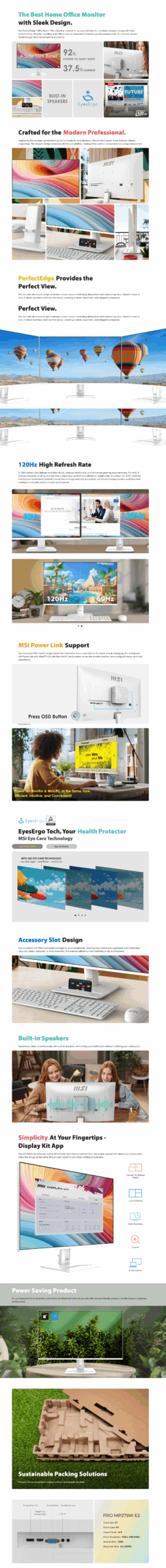 MSI PRO MP275W E2 FHD IPS 120Hz 1ms Built-In Speakers Monitor