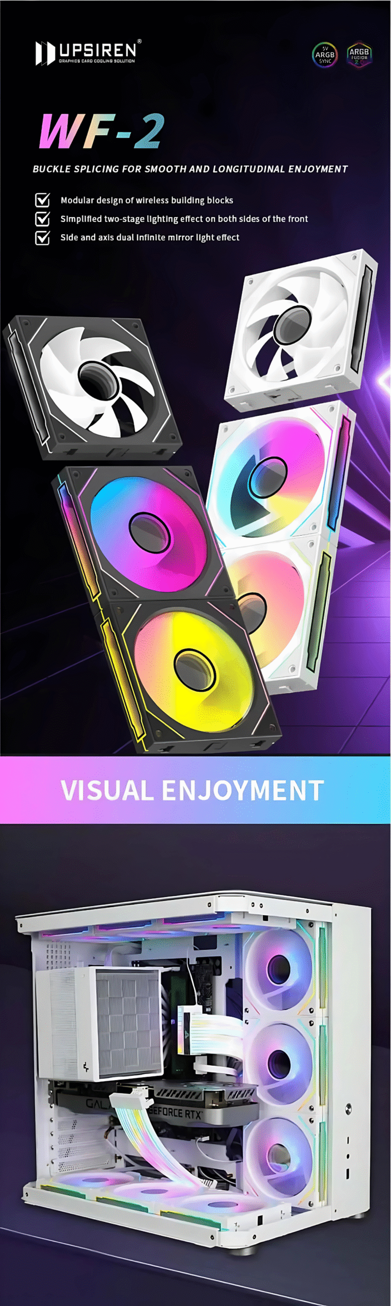 UPSIREN WF-2 Chassis Fan 12CM 3pin ARGB White Single fan