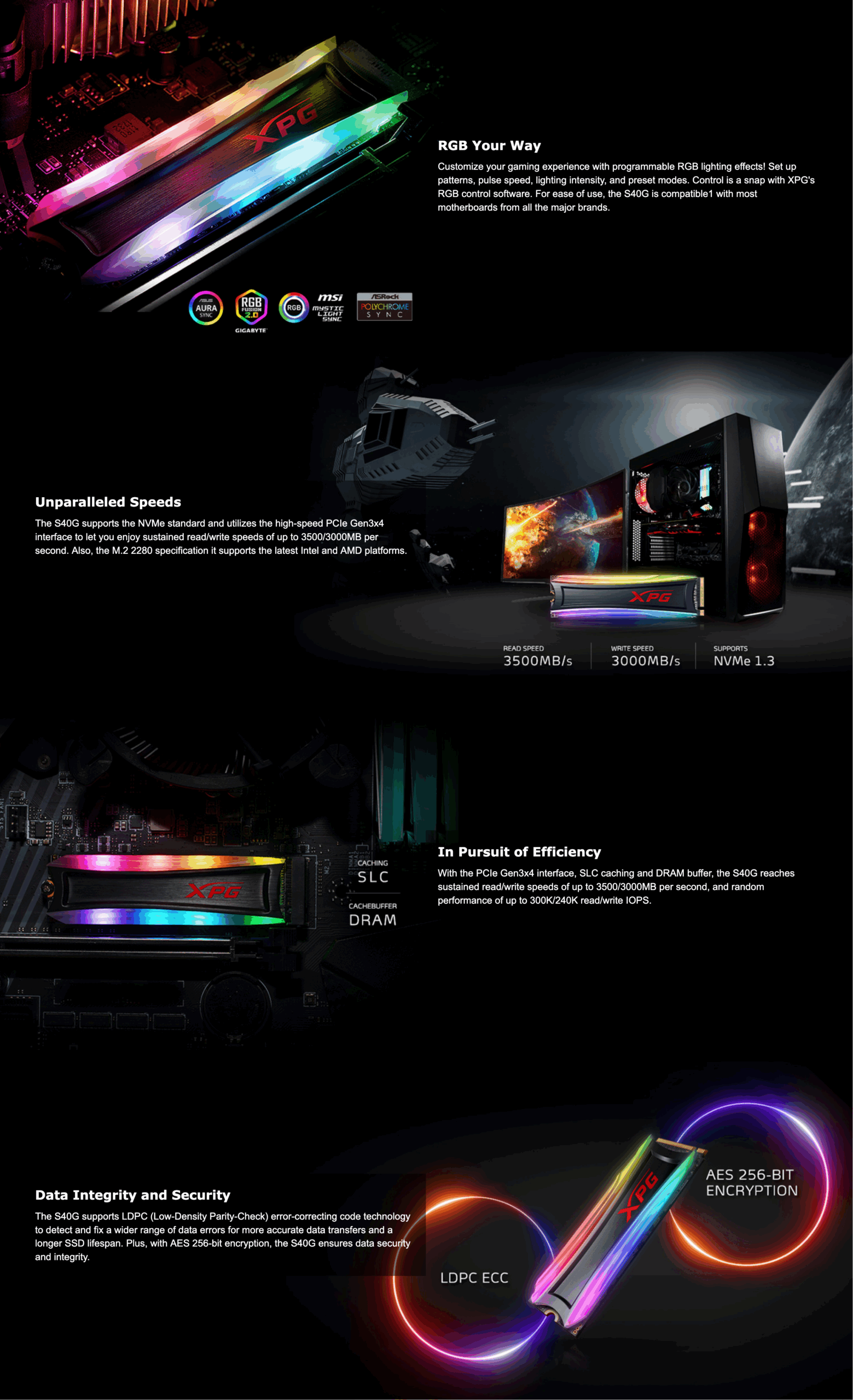 Be the first to review “XPG SPECTRIX S40G RGB 512GB PCIe Gen3x4 M.2 2280 Solid State Drive” Cancel reply